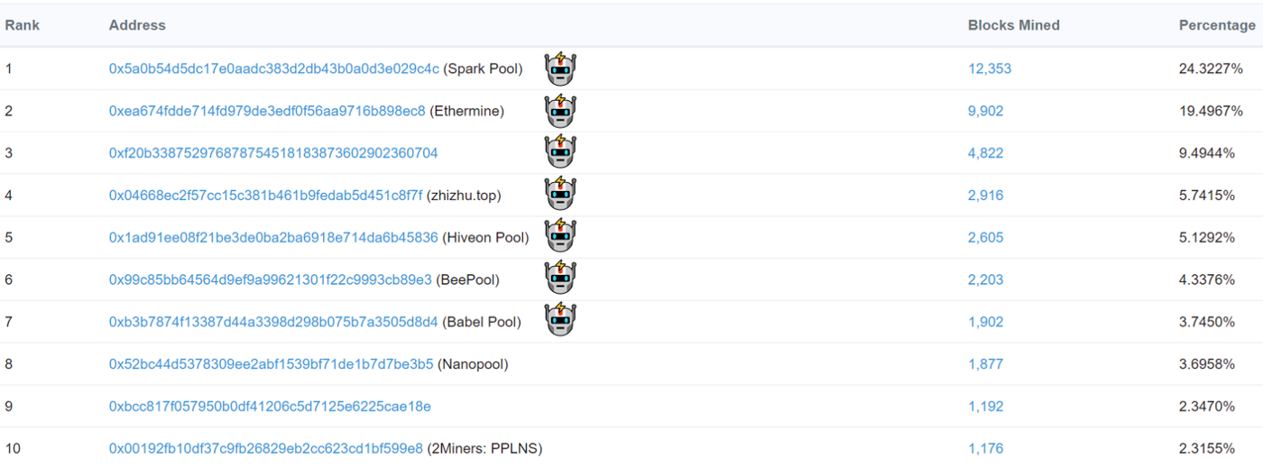Adoption of Flashbots has continued to steadily increase and at the time of writing 21 mining pools — and 5 of the top 5 — accounting for over 80% of Ethereum hashrate are receiving Flashbots bundles. 8 of the top 10 mining pool addresses are currently running MEV-Geth.